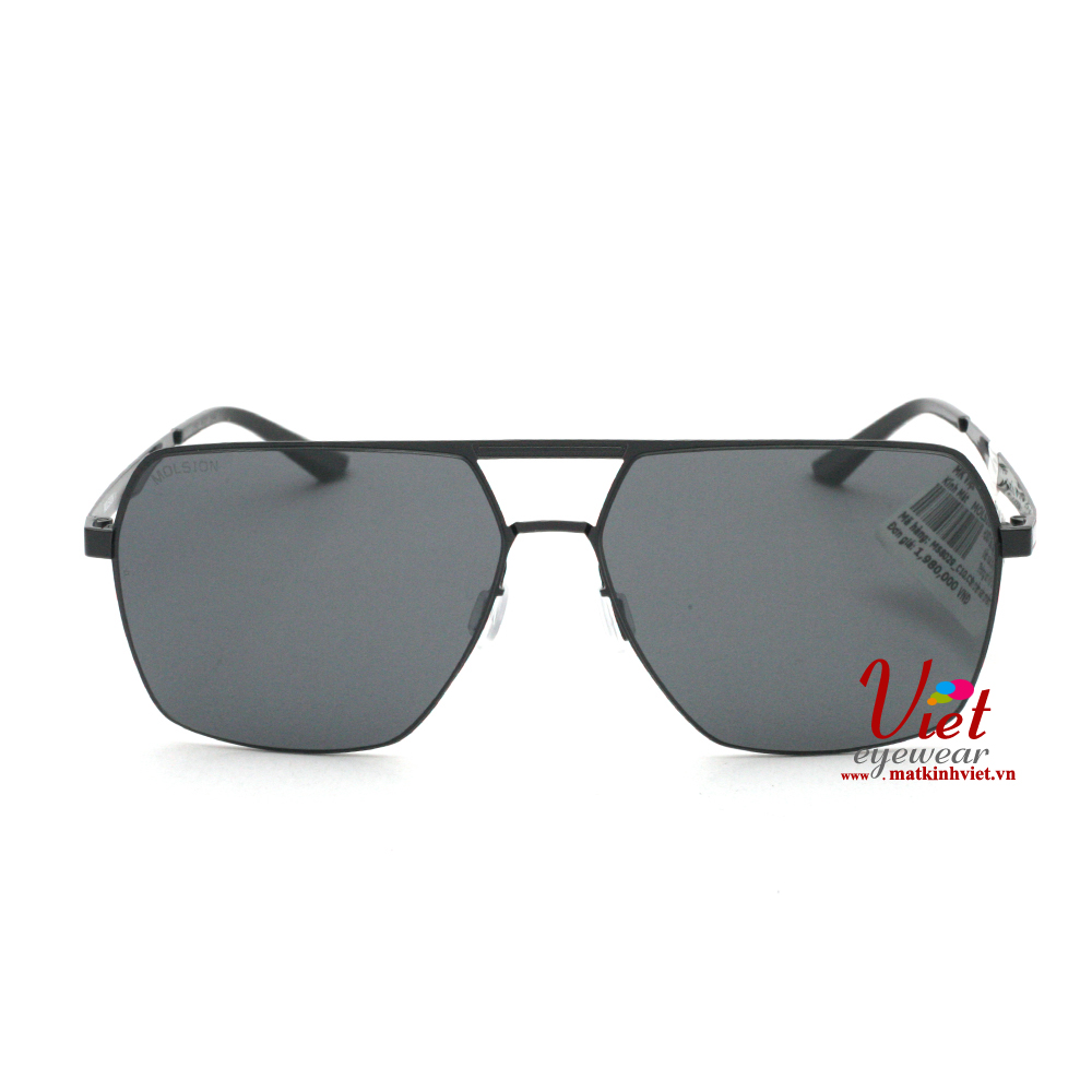 Kính mát MOLSION MS8029 C10 có kiểu dáng nguyên khung với chất liệu kim loại màu đen, tròng kính màu đen