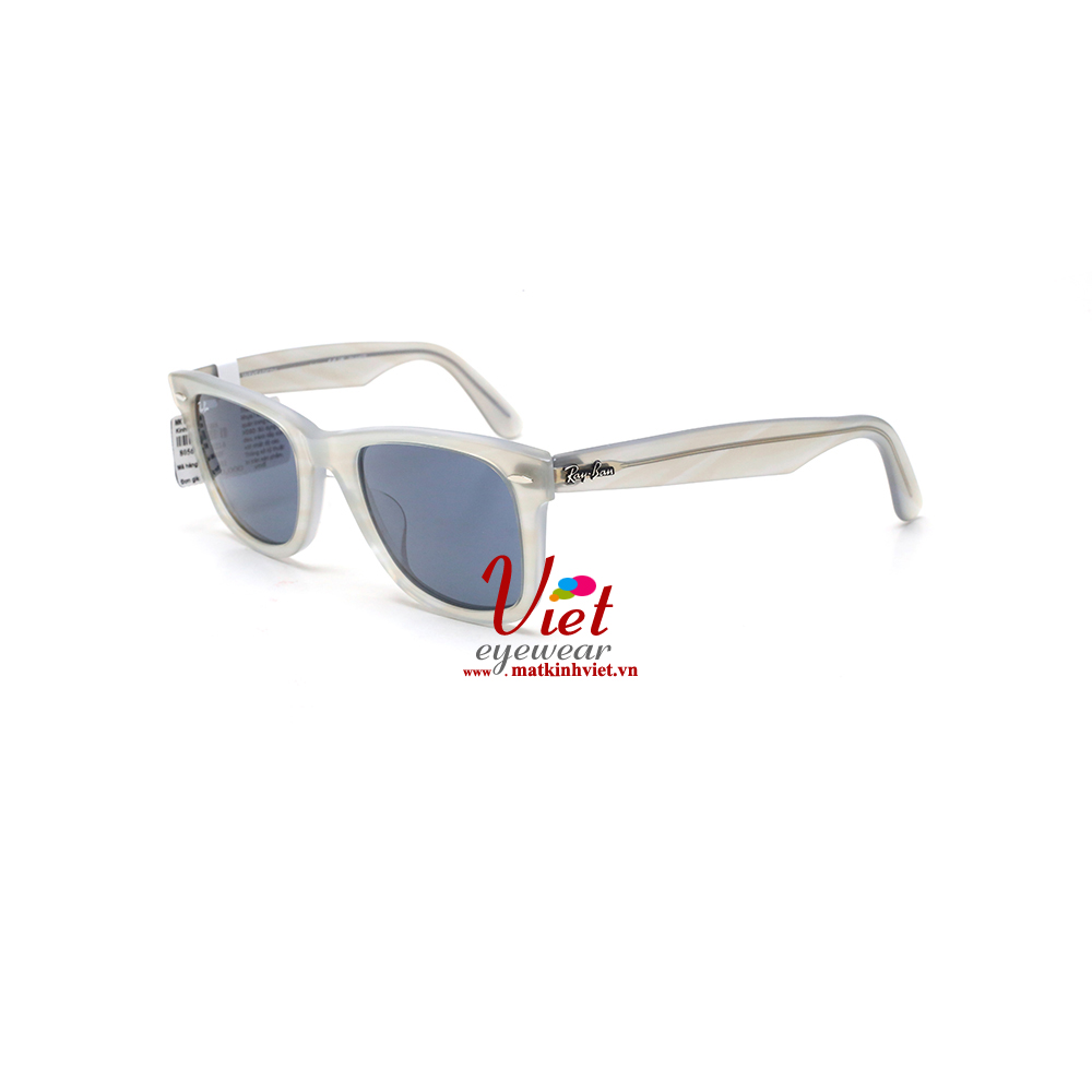 Mắt kính Ray-Ban Wayfarer RB2140F 901 với khung nhựa đen, đi kèm là tròng kính thuỷ tinh màu xanh G-15 Green chống chói tia UV 100%.